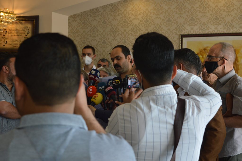 Am darauffolgenden Tag wird unsere geplante Demonstration inklusive Pressekonferenz vor dem UN-Sitz in Erbil verboten. Unser Hotel wird von bewaffneten Kräften mit Sturmgewehren umstellt, wir dürfen das Gebäude nur einzeln für Besorgungen verlassen. Kurzerhand wird die Pressekonferenz unter Anwesenheit von Polizei und Peschmerga in der Hotellobby abgehalten. Ich schreibe eine Pressemitteilung, umringt von türkisch sprechenden Agenten und keine 20 Meter vom Lauf der nächsten AK-47 entfernt. Trotz des Verbots des Protests bleibt ein Erfolg: Alle namhaften Medien der Region sind vertreten, das Thema ist in der lokalen Öffentlichkeit voll gesetzt, kritische Stimmen aus der Region, vorgetragen durch uns Internationalist_innen, können vom Barzani-Regime nicht zum Schweigen gebracht werden.
