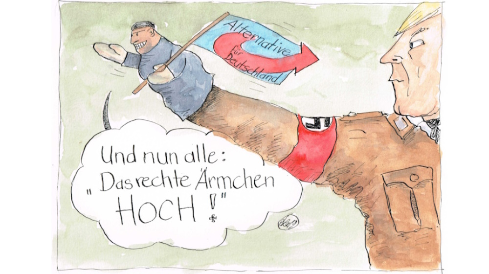 Der Diskurs der AfD verfängt vor allem auch bei vielen Menschen in den neuen Bundesländern, die eine Generation zuvor volkswirtschaftlich enteignet worden waren. Die persönliche Demütigung, im „falschen Staat“ gelebt und ein „falsches Leben“ geführt zu haben, prägt die Biographien bis heute und setzt sich in den jüngeren Generationen fort. Erneut fühlen die Menschen sich der Übermacht einer Elite ausgesetzt. Das alte Misstrauen gegenüber der früheren Staatspartei SED setzt sich fort in der Ablehnung der bürgerlichen Parteien, die aus dem Westen importiert wurden. Demgegenüber stellt sich der West-Import AfD erfolgreich als Anti-Partei, als Feind der Eliten dar und bemächtigt sich des Argwohns, den viele ostdeutsche Bürger:innen gegenüber den Institutionen haben, die ihnen in den letzten 35 Jahren großenteils übergestülpt worden sind. Mit dem Aufstieg des Neonazis Björn Höcke hat sich der eurokritische, nationalistische Diskurs der ehemaligen, rechten Professorenpartei endgültig in einen offen rechtsextremen bis neofaschistischen gewandelt. Der aus Lünen in NRW stammende Höcke verschiebt planvoll „Die Grenzen des Sagbaren“, so der Soziologe Andreas Kemper. Neonazipostionen, die Höcke früher unter dem Pseudonym „Landolf Ladig“ veröffentlichte, haben nun in der bundesrepublikanischen Öffentlichkeit Gewicht. Höcke will zwar den Öffentlich Rechtlichen Rundfunk abschaffen, kann aber im ARD-Sommerinterview seine kaum noch kaschierte NS-Propaganda vor einem Millionenpublikum ausbreiten.