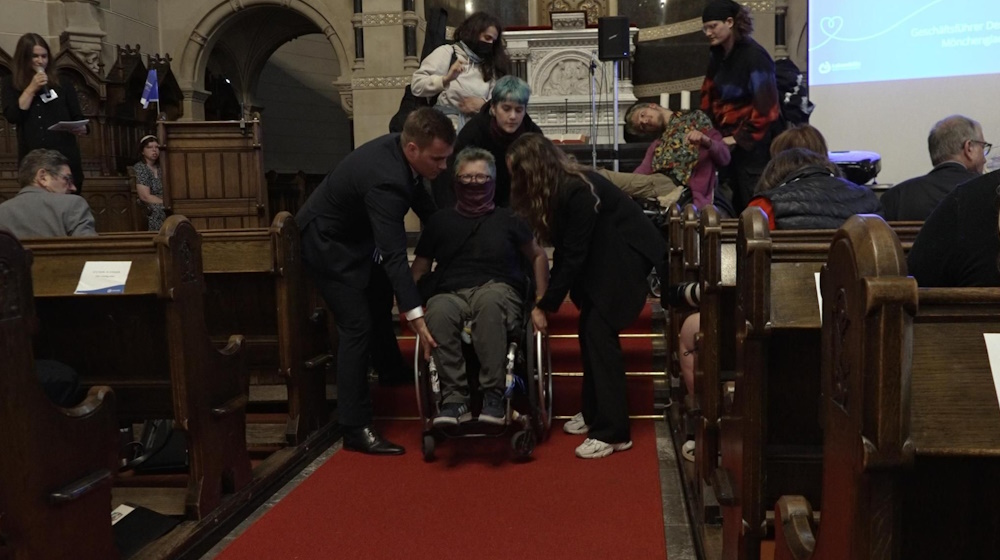 Folgerichtig entschieden sich die Aktivist*innen, die Bühne innerhalb der Kirche, wo die Veranstaltung stattfand, zu betreten, nahmen kurz das Mikrofon an sich und zeigten ein Banner mit den Forderungen „Werkstätten abschaffen“, „Behinderten zuhören“ und „Mindestlohn für alle“. Die Aktivist*innen wurden jedoch übertönt, rasch unterbrochen und zur Seite gedrängt. Nichts Neues.